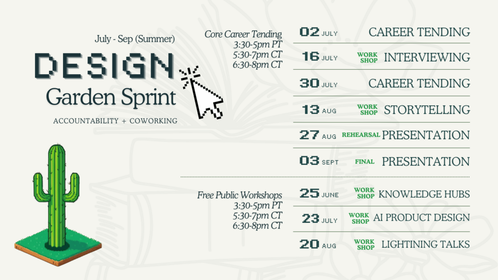 A selective 3-month accountability program helping high-caliber designers document achievements, track progress, and build professional narratives systematically.